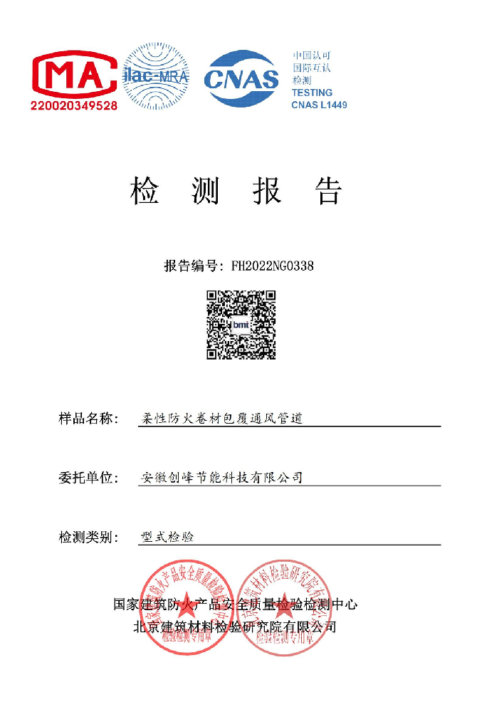下一篇:柔性防火卷材包覆通風管道檢測報告(二)